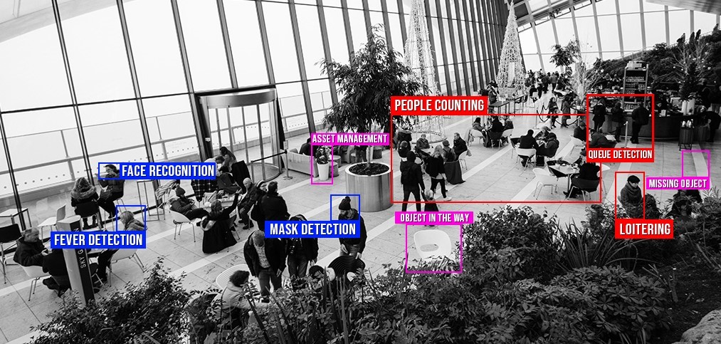 Both fixed algorithm analytics and AI learning algorithms determine unwanted or suspicious behavior in the field of view of an IP camera, and push that information as a notification to the administrator’s computer.